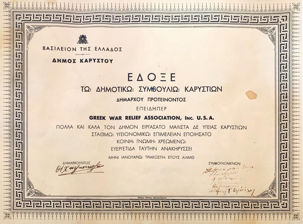 των Ελλήνων - εκ Καρυστίας - ομογενών των Ηνωμένων Πολιτειών της Αμερικής