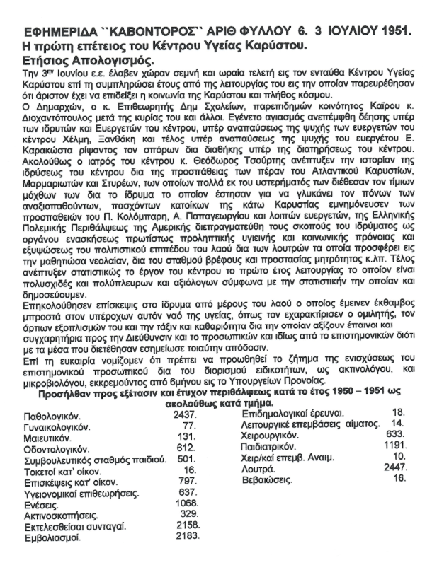 Μετά από 35 χρόνια (το 1987) το Γενικό Νοσοκομείο Καρύστου